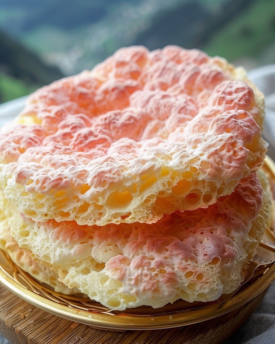 It’s soft, airy, and a little spongy—somewhere between a soufflé and a pancake. It’s not chewy like traditional bread, but still holds together well.