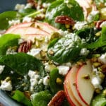 This apple spinach salad with feta, pistachios, and honey-mustard lemon dressing is a bright, fresh mix of sweet, tangy, and nutty flavors. Crisp apples, creamy feta, and crunchy pistachios are tossed with tender baby spinach and a zesty homemade dressing that brings everything together beautifully.