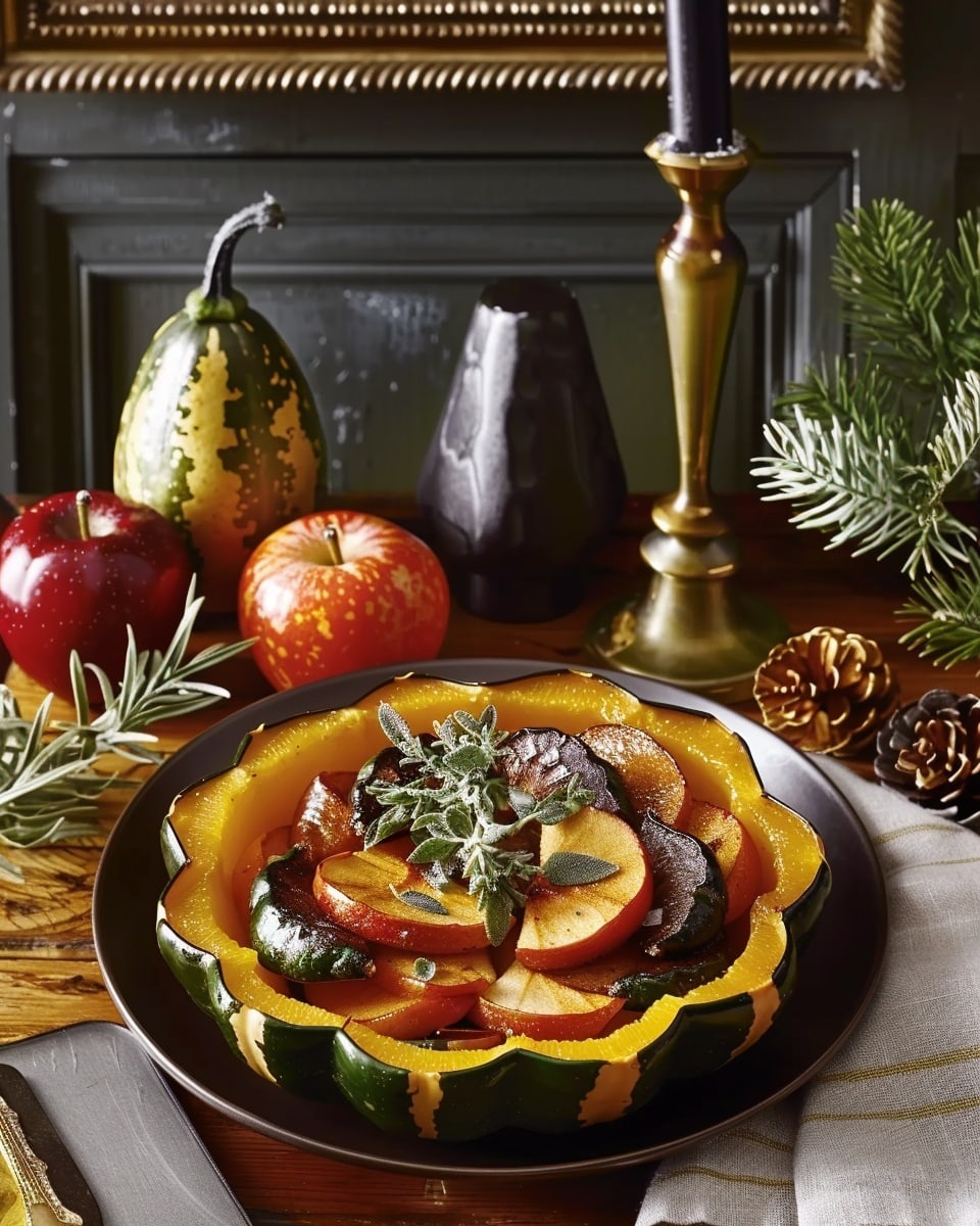 I roast halved acorn squash until tender, then fill them with a sweet‑spiced apple mixture and bake again until everything is warm and melded together. The result is comforting, fall‑flavored, and perfect as a side or even a light main.