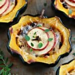 Yes — I often cook the squash halves and the apple filling ahead. Then when ready to serve, I assemble them and finish baking so it’s hot and fresh.