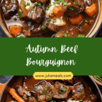 Autumn Beef Bourguignon is a rich, rustic French-inspired stew made with tender beef, red wine, hearty vegetables, mushrooms, and herbs. Slow-simmered to perfection, this cozy one-pot meal is perfect for chilly fall evenings and makes even better leftovers.