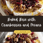 Baked Brie with Cranberries and Pecans is a rich, gooey, and festive appetizer topped with sweet cranberries and crunchy pecans—perfect for holiday gatherings or cozy nights in.