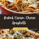 This Baked Cream Cheese Spaghetti is a warm, comforting dish that combines creamy, cheesy goodness with classic Italian flavors. It’s the perfect twist on traditional spaghetti, baked to golden perfection with a rich tomato meat sauce and a velvety layer of cream cheese that melts into every bite.