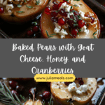 Baked Pears with Goat Cheese, Honey, and Cranberries is a warm, elegant dish that blends sweet, tangy, and savory elements into a visually stunning and delicious appetizer, side, or light dessert—perfect for fall and holiday entertaining.
