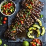 Balsamic skirt steak with red pepper relish and zucchini salad is a vibrant, well-balanced meal featuring juicy marinated steak, sweet and tangy pepper relish, and a crisp zucchini side salad. It’s fresh, bold, and perfect for quick dinners or casual gatherings.
