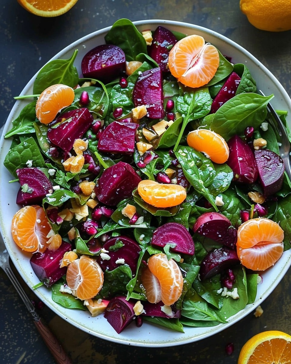 This beet salad with spinach, mandarins, and honey-mustard lemon dressing is a refreshing mix of vibrant colors, textures, and flavors. I love how simple yet elegant it feels — perfect for everyday meals or special occasions. It’s healthy, delicious, and always a hit on the table.