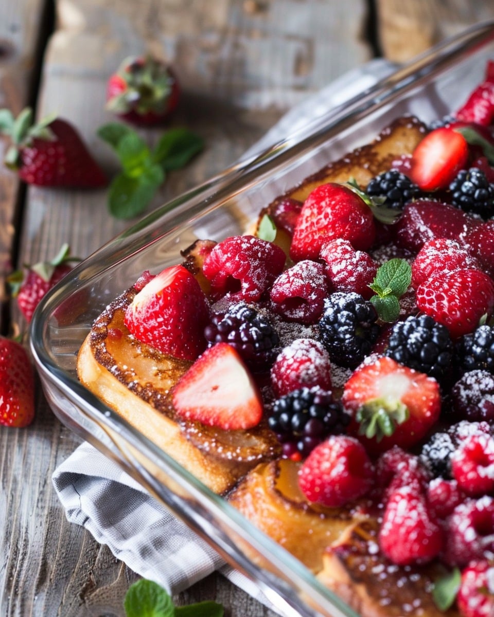 I love this recipe because it’s simple, beautiful, and feeds a crowd without much effort. The berries add a burst of flavor and color, and the soft, eggy bread holds everything together without getting soggy. I can assemble it the night before and pop it in the oven in the morning, which makes hosting brunch a lot less stressful.