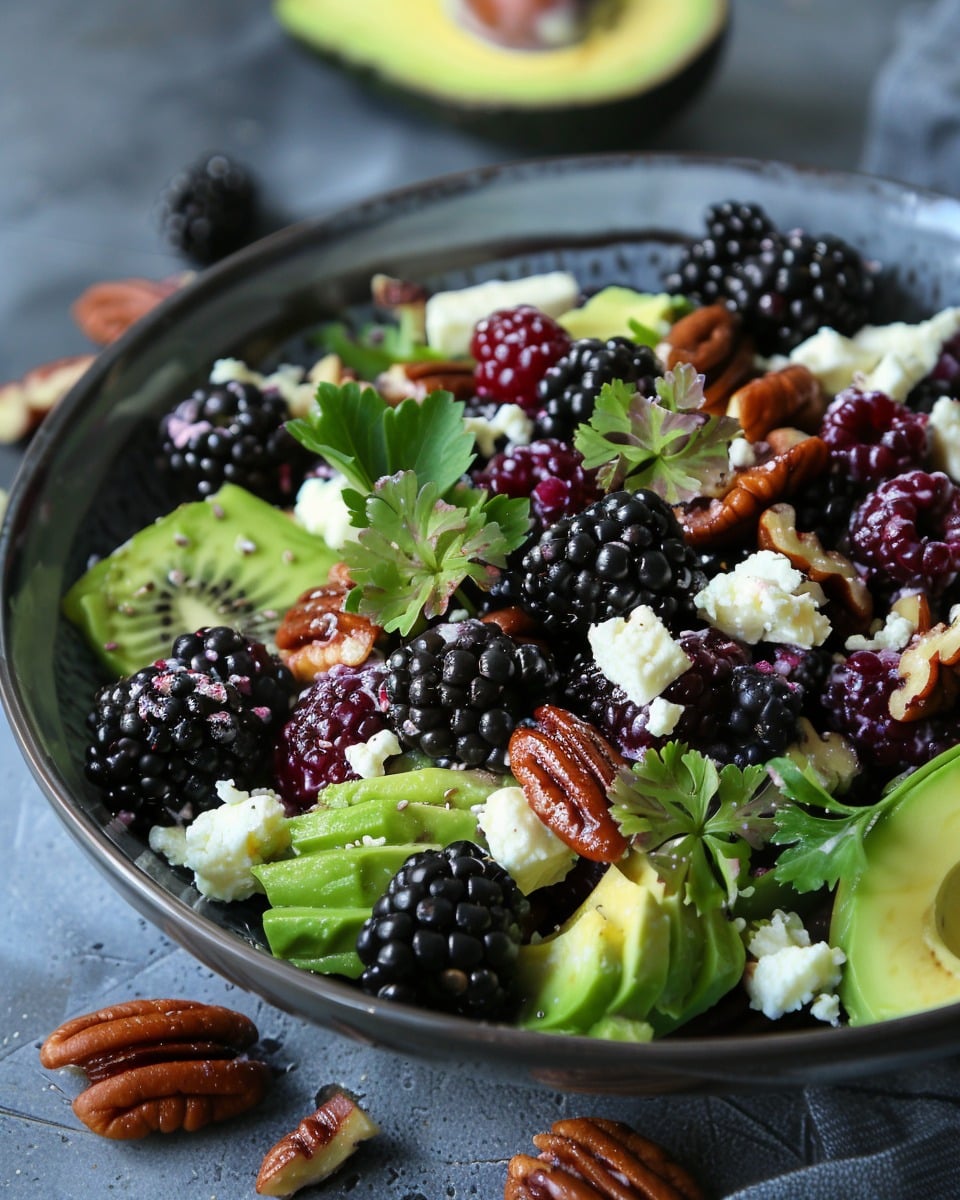 Blackberry and Avocado Salad with Pecans, Goat Cheese, and Honey Mustard Lemon Dressing is one of those salads that feels both light and luxurious. It’s packed with fresh, seasonal ingredients and delivers tons of flavor without being fussy. Whether I’m making it for a dinner party or a quick lunch, it always feels like a bright, feel-good choice.