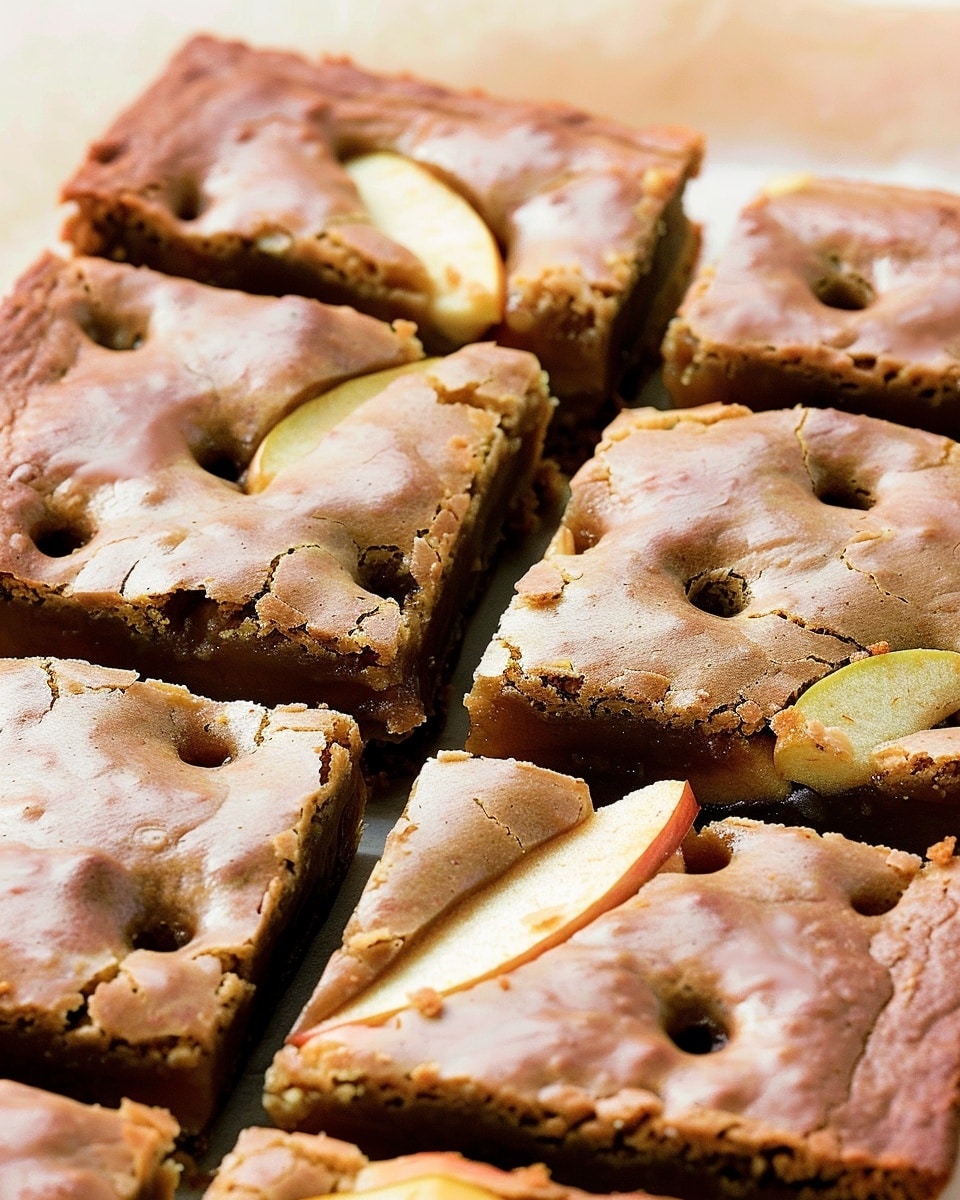 These blondies are a cozy twist on dessert bars: rich nutty brown butter, tender apples spiced with cinnamon, and a sweet icing or glaze make them irresistible. I combine lightly cooked apple pieces with a buttery blondie base, then drizzle them with a brown-butter icing once cooled.