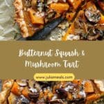 A savory and comforting Butternut Squash & Mushroom Tart with roasted vegetables and a creamy cheese filling baked in a flaky crust. Elegant enough for entertaining yet simple to prepare.