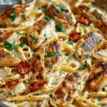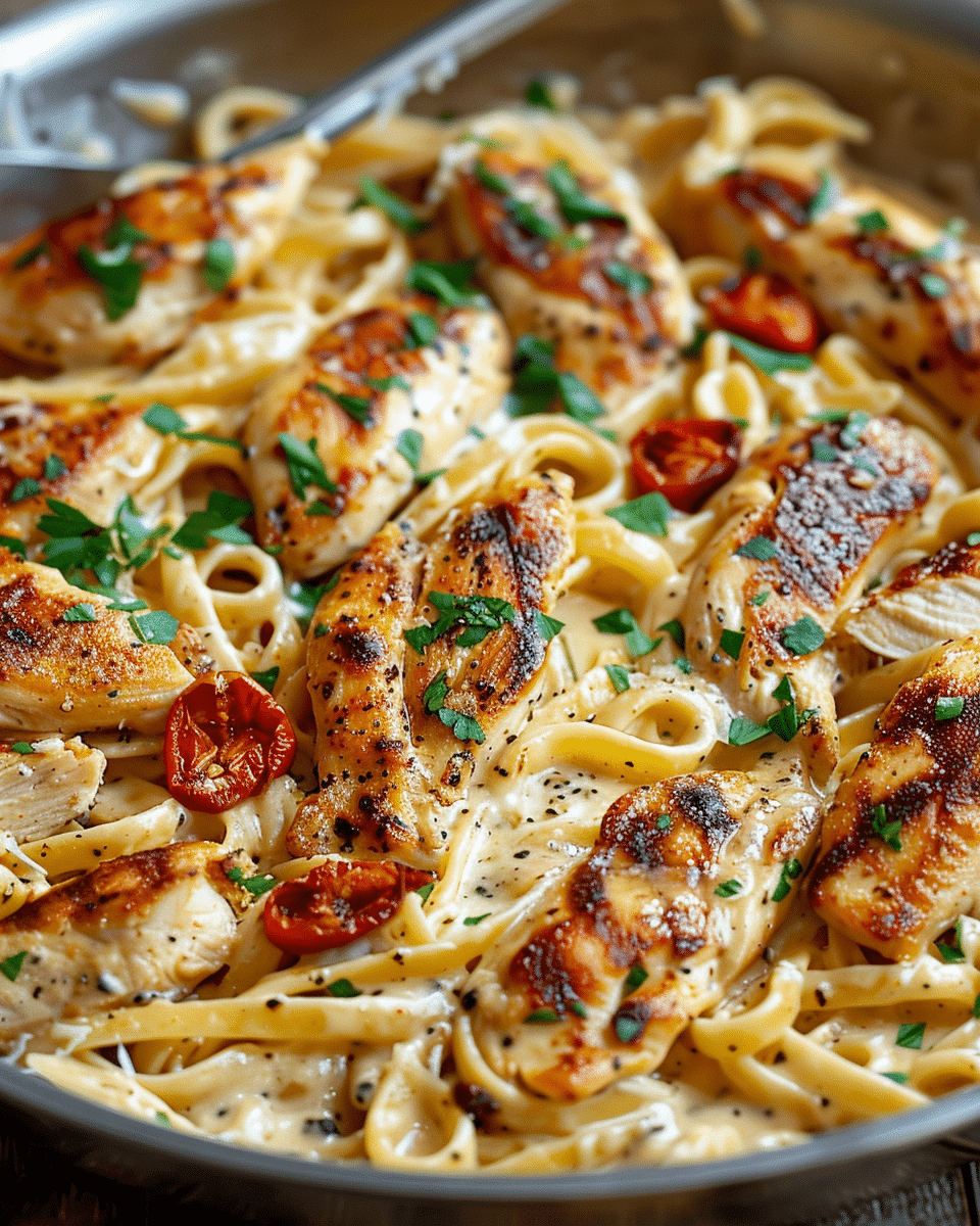 When I want to change things up, I add sautéed bell peppers or spinach to the sauce for extra color and nutrition. I’ve also made this dish with shrimp instead of chicken for a seafood twist. For a lighter version, I use half-and-half instead of heavy cream, though the sauce is slightly less rich. I sometimes mix in sun-dried tomatoes for a sweet, tangy contrast.