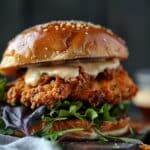 I enjoy making this Cajun crispy chicken sandwich with garlic aioli when I want a bold and satisfying meal. The chicken is coated with flavorful Cajun spices and fried until crispy, while the creamy garlic aioli adds a rich and savory touch. I like how the crunchy chicken, soft bun, and fresh toppings come together to create a sandwich that feels both comforting and packed with flavor.