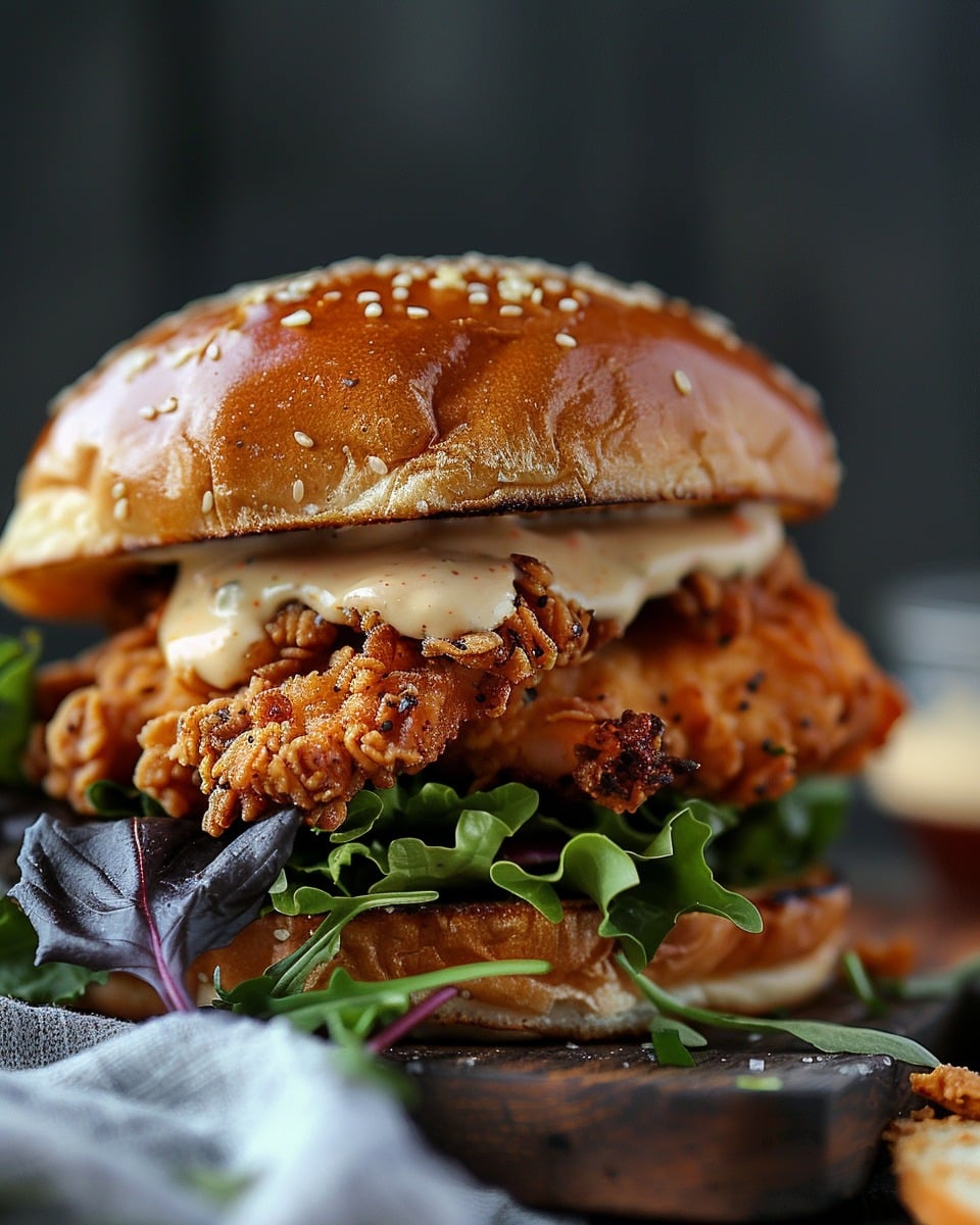 I sometimes add sliced avocado for a creamy texture that pairs well with the crispy chicken. Another variation I enjoy is using pepper jack cheese for extra flavor and mild heat. I also like adding a drizzle of hot sauce to the aioli when I want a spicier sandwich.