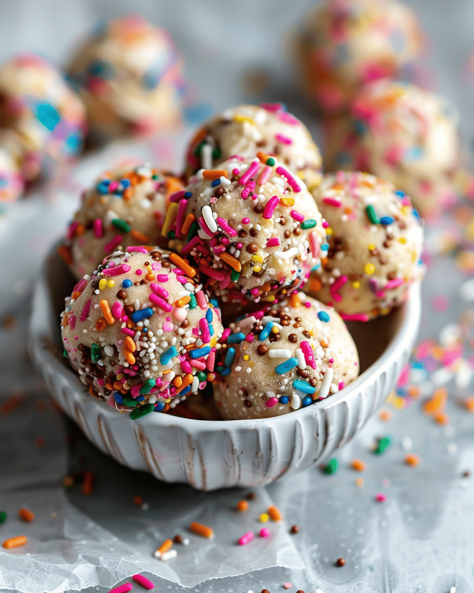 Cake Batter Protein Balls are soft, sweet, no-bake bites that taste just like birthday cake—without the guilt. Packed with protein, healthy fats, and naturally colored sprinkles, they’re perfect for quick energy, a healthy treat, or a fun snack that satisfies cravings.
