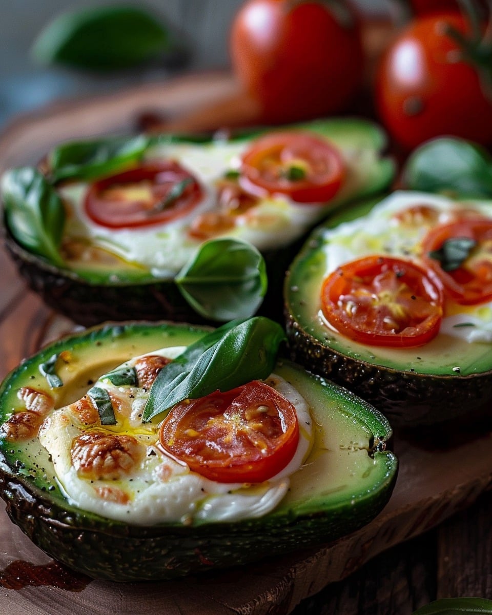 Caprese Stuffed Avocados are a fresh, creamy twist on the classic Caprese salad. Juicy tomatoes, soft mozzarella, and fresh basil are tucked into ripe avocado halves, then finished with a drizzle of balsamic glaze for a quick and elegant dish.