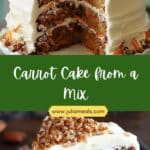 A quick and easy carrot cake made from a boxed mix, enhanced with simple add-ins for a moist, flavorful, and homemade-style dessert.