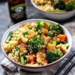 This Cauliflower Rice Stir Fry Bowl is a quick, healthy, low‑carb stir fry packed with colorful vegetables, protein, and bold Asian‑inspired flavors. Ready in just 30 minutes, it’s the perfect meal prep recipe or weeknight dinner that’s light yet satisfying. Whether you go with chicken, shrimp, tofu, or tempeh, this veggie‑loaded cauliflower rice bowl is endlessly customizable and deliciously nourishing.