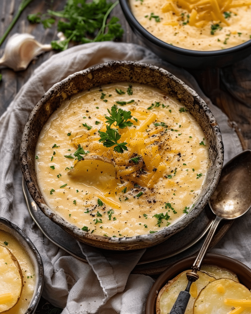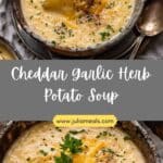 Cheddar Garlic Herb Potato Soup is a creamy, comforting soup made with tender potatoes, sharp cheddar cheese, fresh herbs, and garlic. Rich, hearty, and flavorful, it’s the perfect bowl of coziness for chilly days or easy weeknight dinners.
