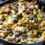 This Cheese Steak Hamburger Helper Skillet combines all the flavors of a classic Philly cheesesteak—savory ground beef, sautéed onions, peppers, and melty cheese—with the ease of a creamy one-pan pasta. Ready in under 30 minutes, this skillet dinner is perfect for busy weeknights, picky eaters, and anyone craving cozy comfort food with minimal cleanup.