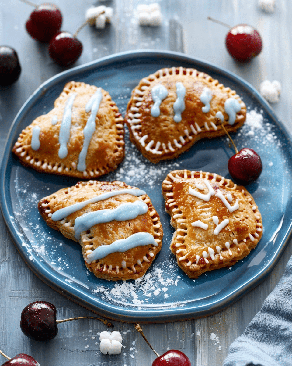 Cherry mitten hand pies are festive, individually sized pastries filled with sweet-tart cherry filling and wrapped in a golden, flaky crust. Shaped like cozy mittens, they’re a delightful treat for winter gatherings, holiday parties, or gifting.