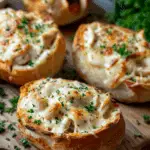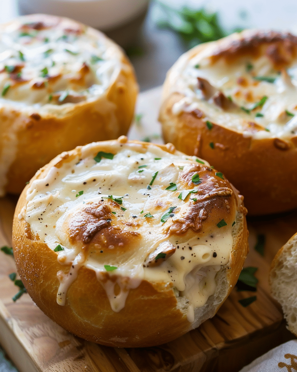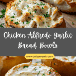 Chicken Alfredo garlic bread bowls are a rich, cheesy, and comforting twist on classic pasta night. Each crispy, buttery bread bowl is filled with creamy Alfredo pasta and tender chunks of chicken, making every bite taste like something straight out of a cozy Italian restaurant. It’s a complete meal served in an edible bowl—and I love how fun and satisfying it is.
