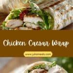Chicken Caesar Wraps are best eaten fresh, but I store any extras in the fridge wrapped tightly in foil or plastic wrap for up to 1 day. To prevent sogginess, I keep the filling and wraps separate until I’m ready to eat. These wraps aren’t great for reheating, so I enjoy them cold or room temperature.