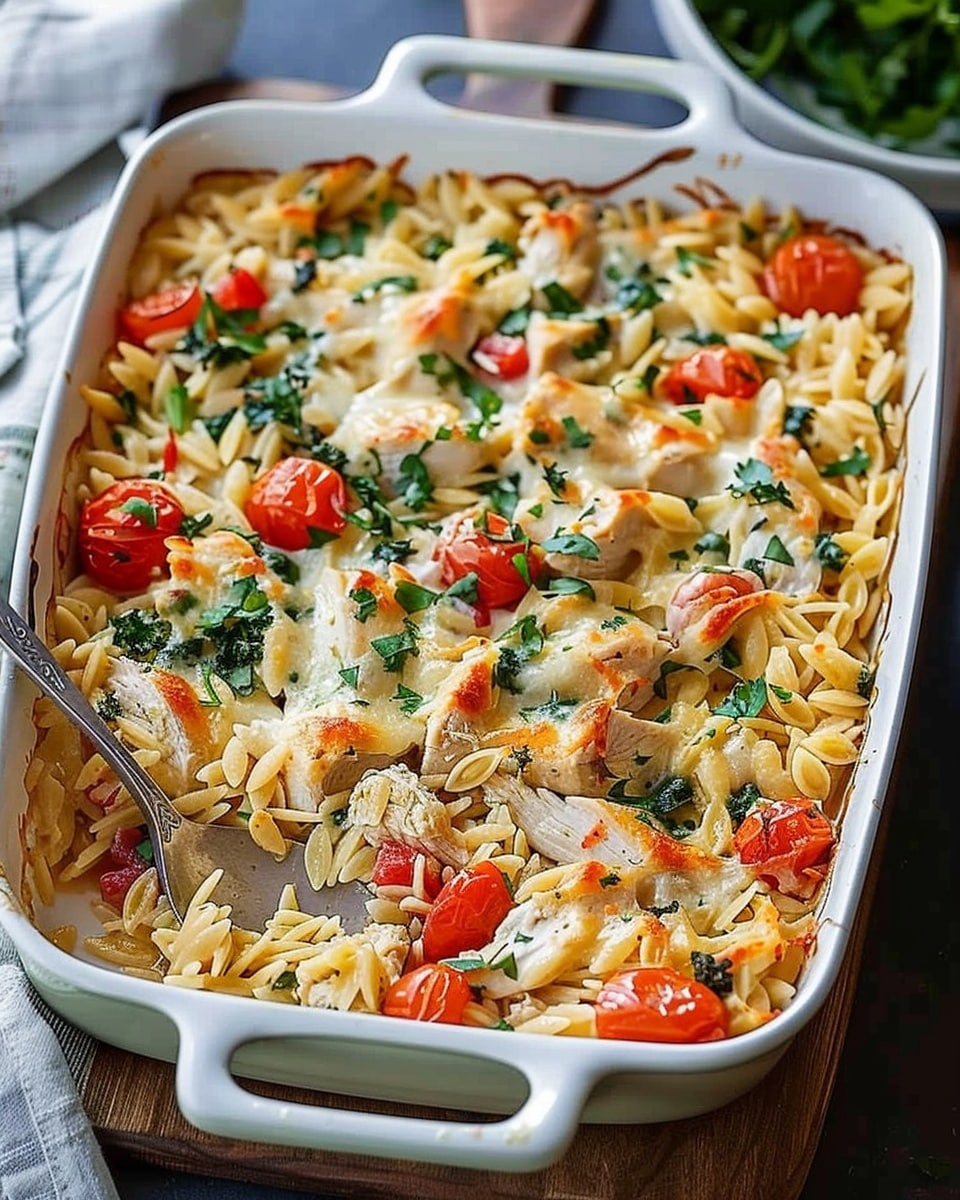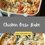 This Chicken Orzo Bake is a cozy, one-pan meal combining tender chicken, creamy orzo pasta, savory vegetables, and herbs—all baked to bubbly, golden perfection. It’s perfect for weeknight dinners or make-ahead meals.