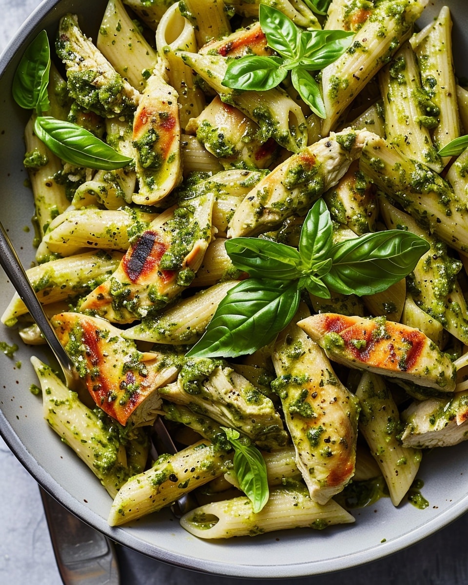 A fresh and comforting chicken pesto pasta made with tender chicken, vibrant basil pesto, and pasta tossed in a creamy, flavorful sauce that’s satisfying yet light.