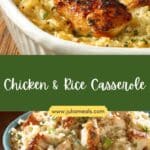 Chicken & Rice Casserole is a creamy, comforting one-dish meal featuring tender chicken, fluffy rice, and savory seasoning. It’s easy to prep with no need to pre-cook the chicken or rice, making it perfect for busy nights or meal prepping ahead.