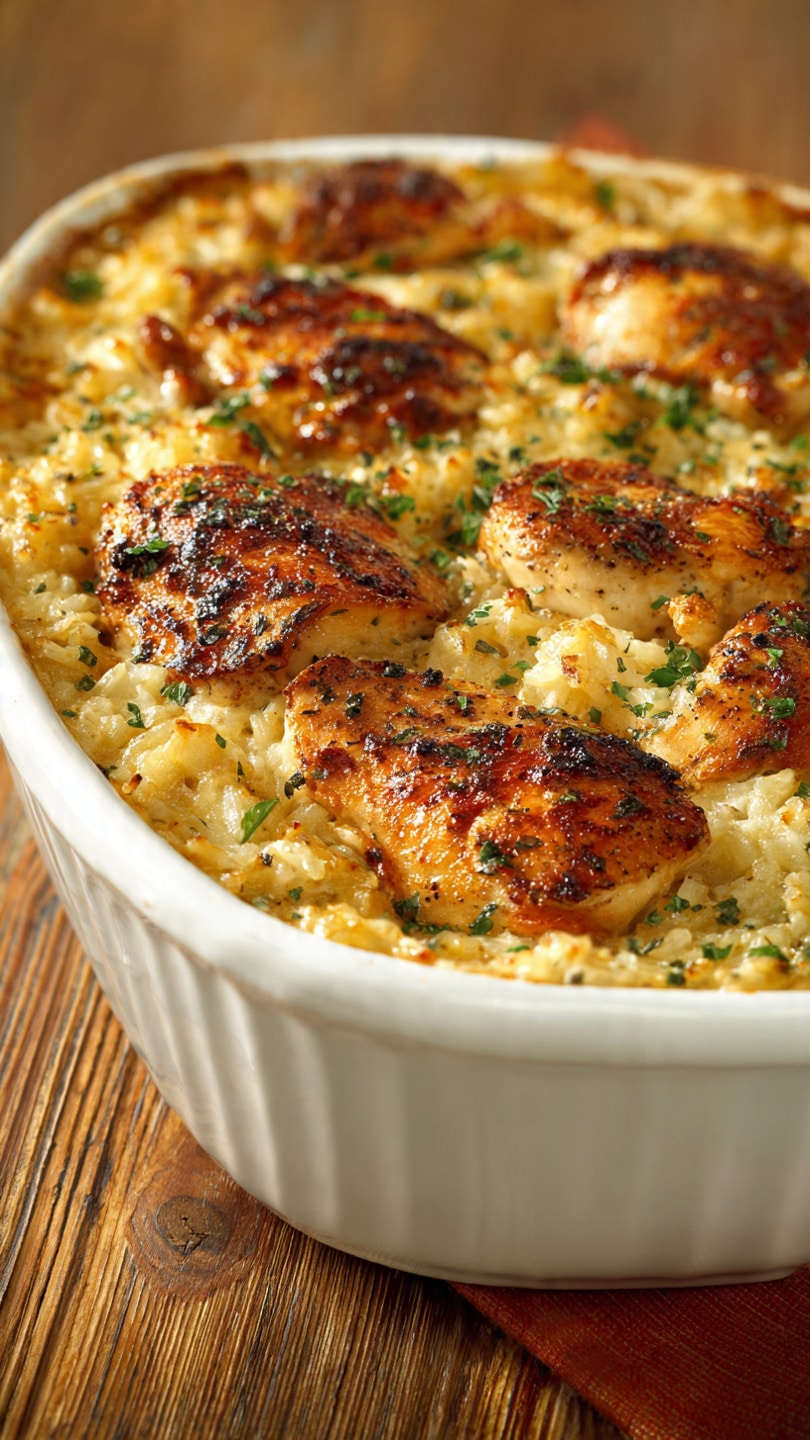 - Use cooked chicken and rice for a quicker version—bake uncovered for 25–30 minutes.