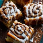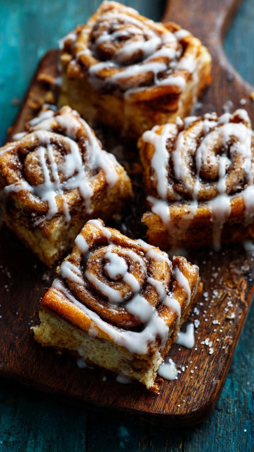 I sometimes add chopped pecans to the cinnamon swirl for extra crunch. For a maple twist, I replace the vanilla in the glaze with maple extract. When I want an extra-decadent version, I double the glaze and spread it on like frosting instead of drizzling.