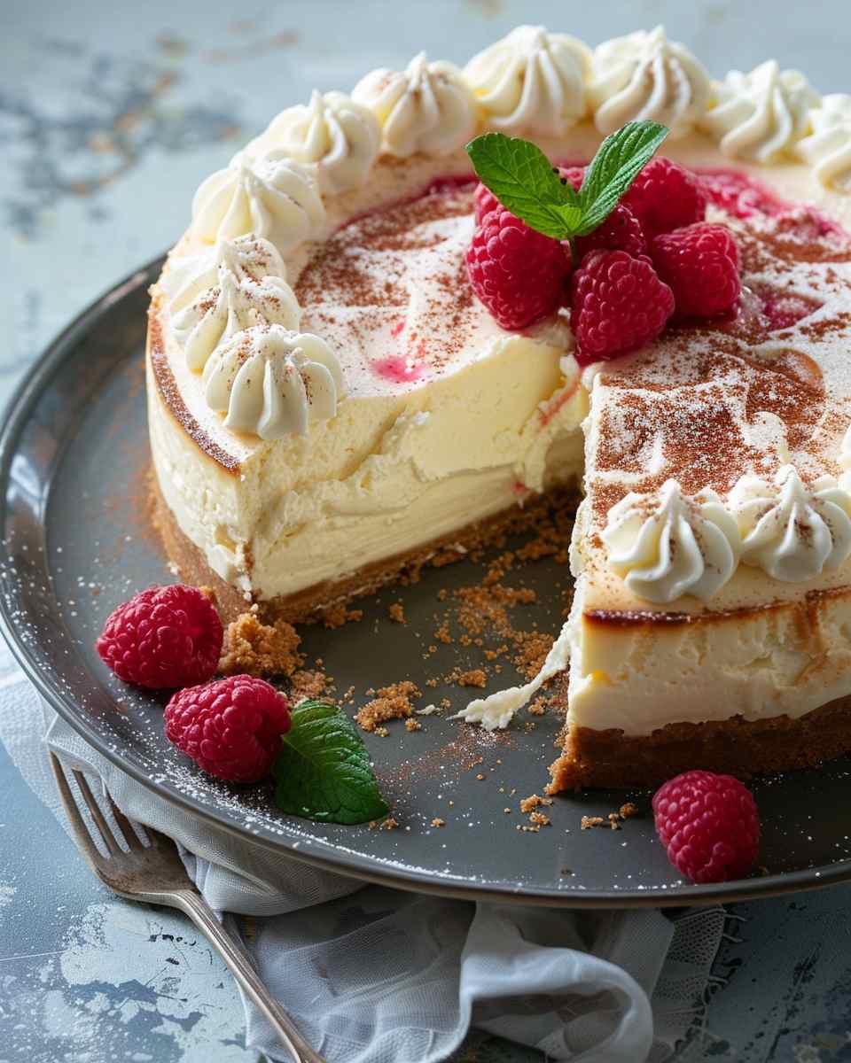 A rich and creamy classic cheesecake with a smooth, velvety filling and a buttery graham cracker crust, perfect for any occasion.