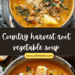 Country Harvest Root Vegetable Soup is a hearty, rustic bowl of comfort that highlights the earthy, naturally sweet flavors of seasonal root vegetables. It’s the kind of soup I turn to when I want something warm, nourishing, and full of wholesome goodness. Packed with ingredients like carrots, parsnips, sweet potatoes, and turnips, this soup brings together deep flavors and creamy textures that make each bite feel like fall in a bowl.