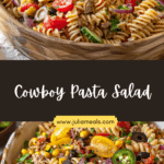Cowboy pasta salad is a hearty and flavorful main-dish salad loaded with pasta, ground beef, cheese, beans, corn, and a creamy, tangy dressing. It’s perfect for potlucks, barbecues, or meal prep and delivers bold Southwestern-inspired flavors in every bite.