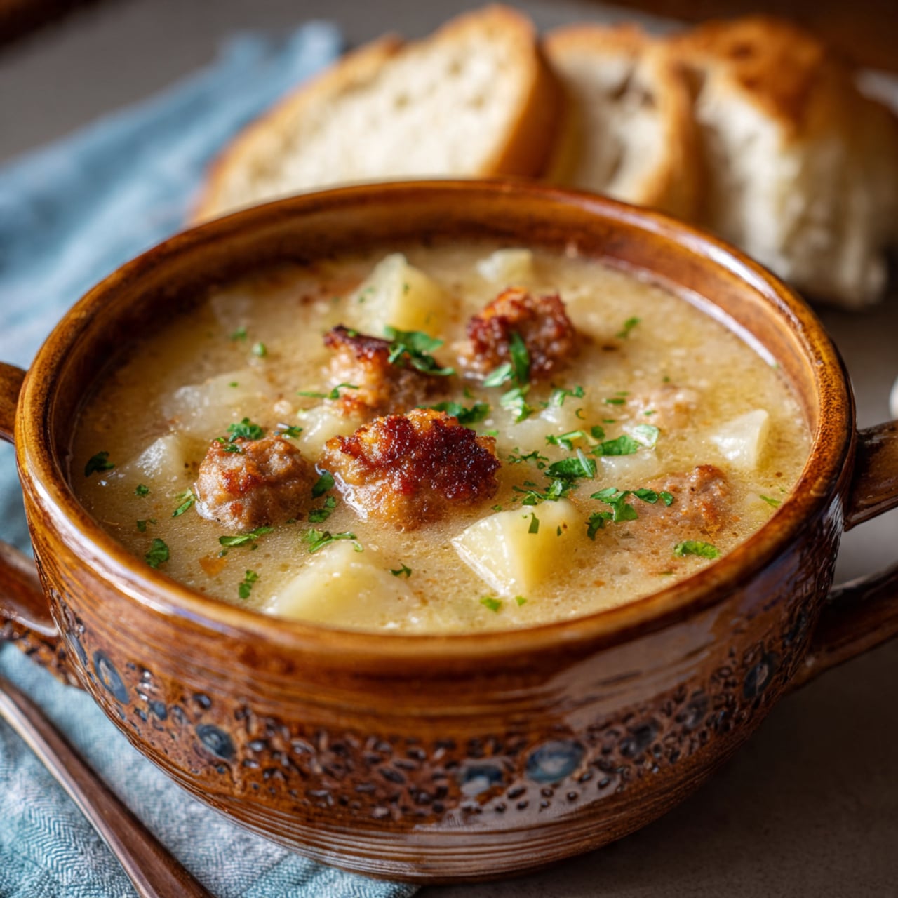A warm and hearty sausage potato soup made with savory Italian sausage, tender potatoes, and a creamy, flavorful broth for the ultimate comforting one-pot meal.