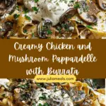 Creamy chicken and mushroom pappardelle with burrata is pure comfort food with a touch of elegance. I love how all the components come together in one luscious, satisfying dish. Whether I’m cooking it for a dinner party or just treating myself to something special, it always feels like a little moment of luxury on a plate.