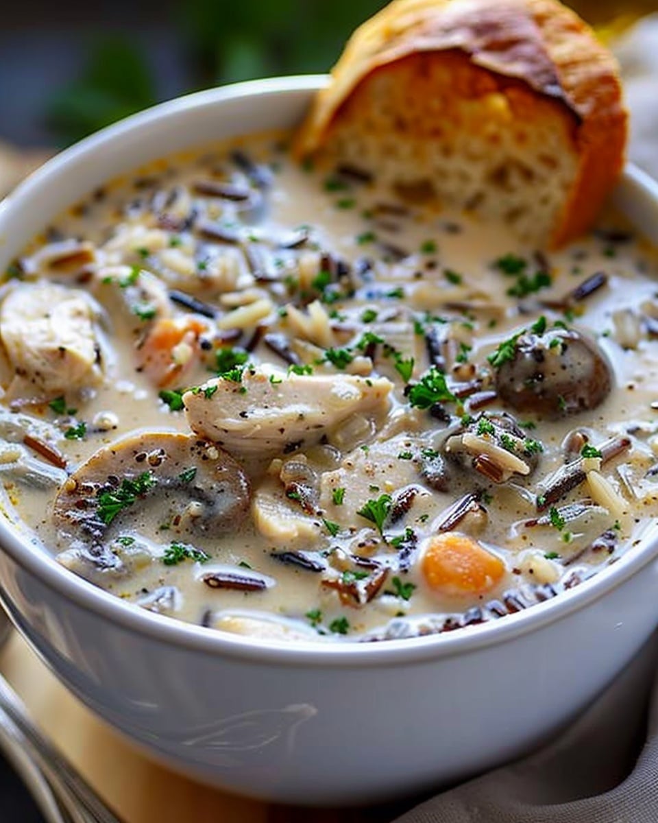 PrintCreamy Chicken & Mushroom Wild Rice Soup