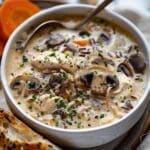 This Creamy Chicken & Mushroom Wild Rice Soup is rich, hearty, and packed with flavor. Tender chicken, wild rice, and earthy mushrooms simmer in a creamy, herb-infused broth. It’s the perfect cozy recipe for cold nights or comforting meal prep.
