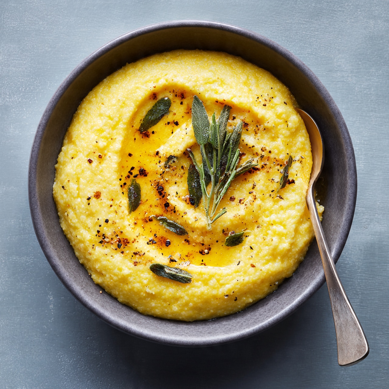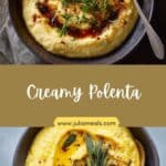 A velvety and comforting Creamy Polenta made from slow-cooked cornmeal, enriched with butter and Parmesan for a smooth, luxurious texture. This rustic yet elegant dish pairs beautifully with vegetables, meats, or hearty stews.