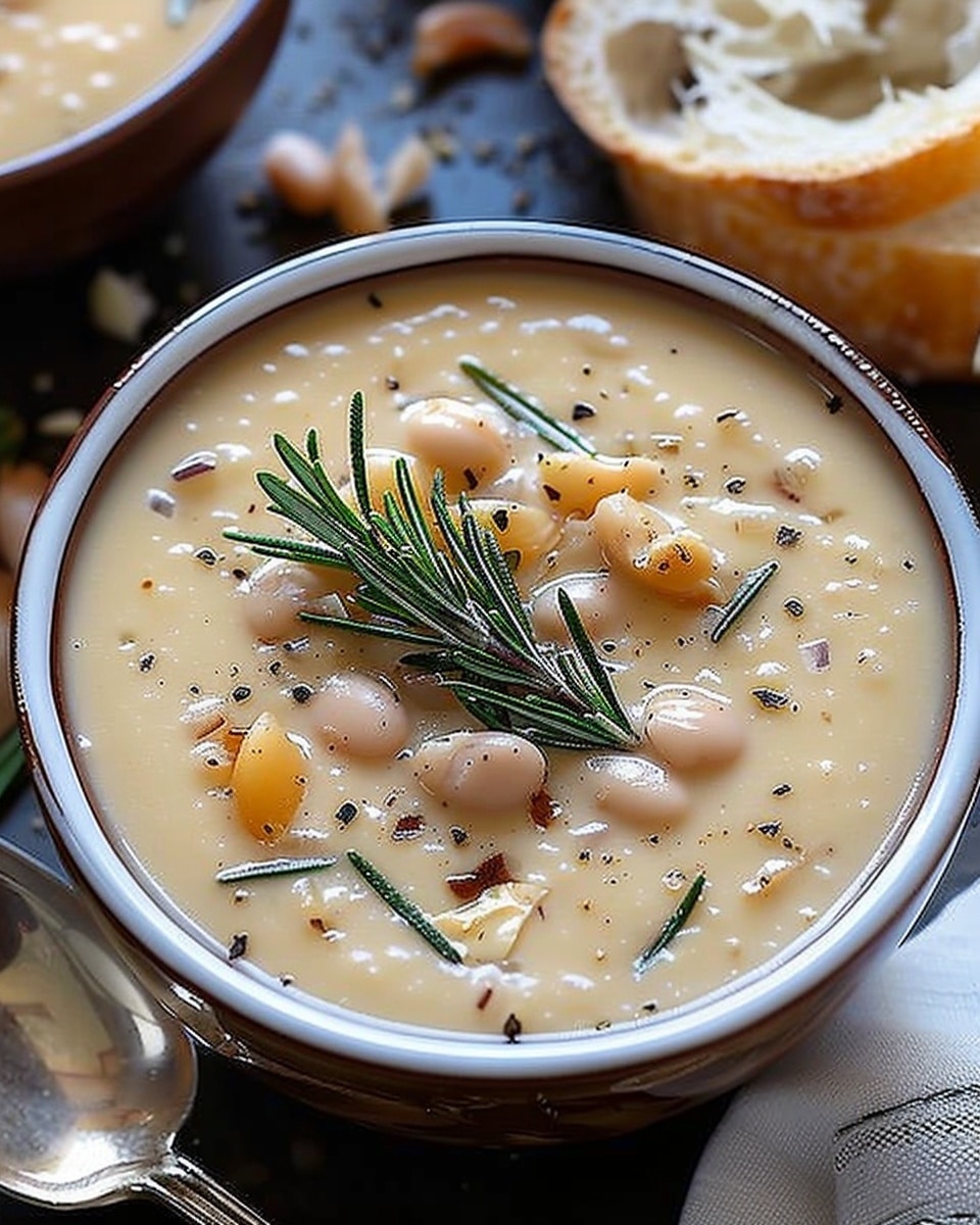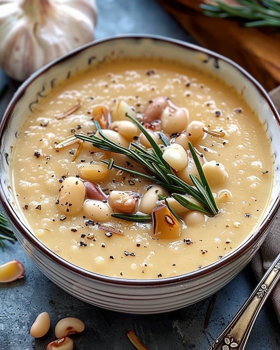 PrintCreamy Rosemary & Roasted Garlic White Bean Soup