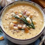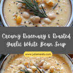 Creamy Rosemary & Roasted Garlic White Bean Soup is a rich, velvety, and deeply flavorful soup that feels both rustic and refined. The roasted garlic brings a mellow sweetness, the white beans add creaminess and protein, and the rosemary adds a woodsy herbal note that ties everything together beautifully. It’s the kind of soup I make when I want something cozy and comforting without being too heavy.