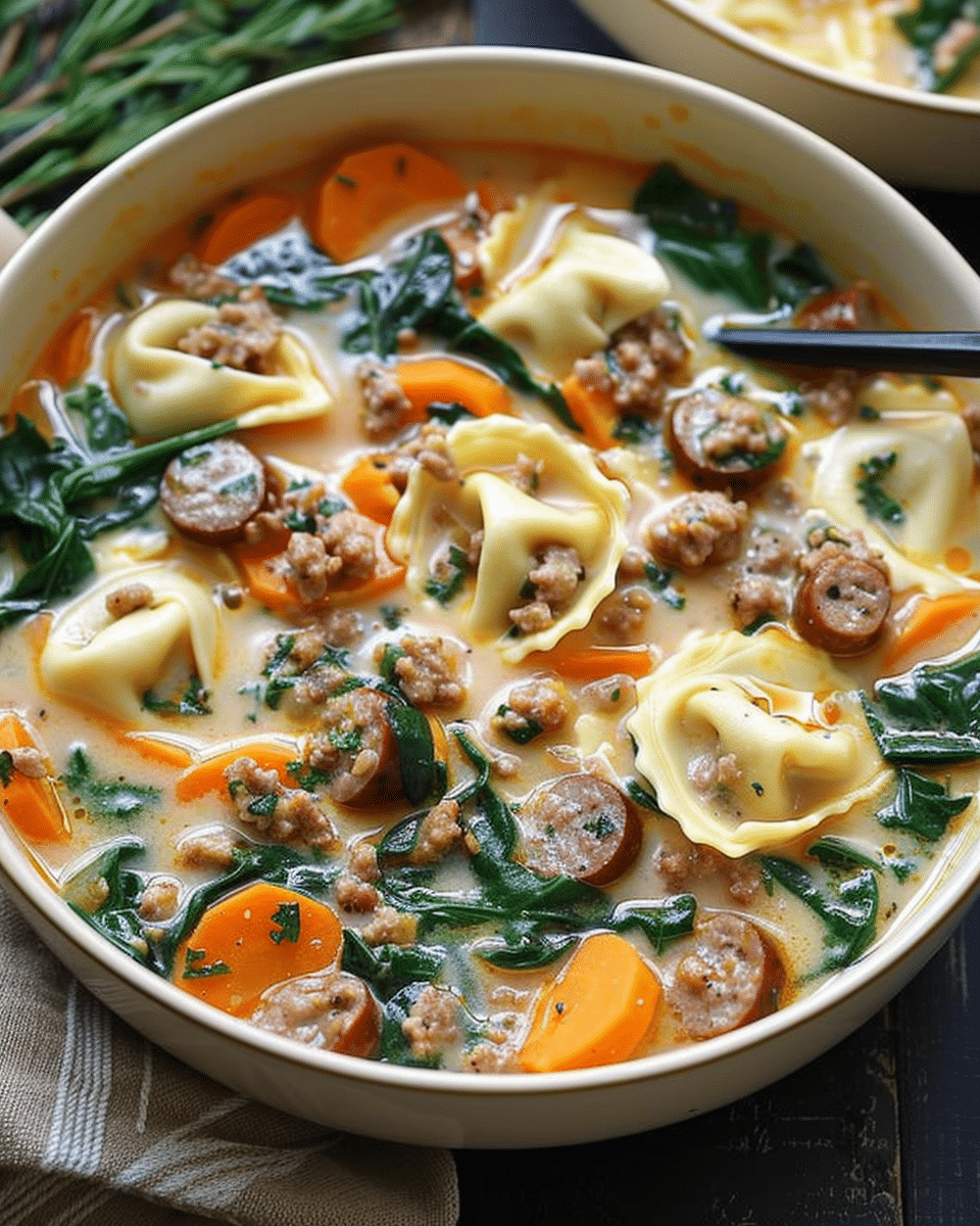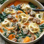 Creamy sausage tortellini soup with spinach and sweet potatoes is a rich, one-pot comfort meal packed with flavor. Featuring cheesy tortellini, savory sausage, tender sweet potatoes, and a creamy broth, this hearty soup is perfect for cold nights, easy dinners, or make-ahead lunches.