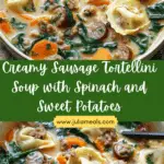 PrintCreamy Sausage Tortellini Soup with Spinach and Sweet Potatoes