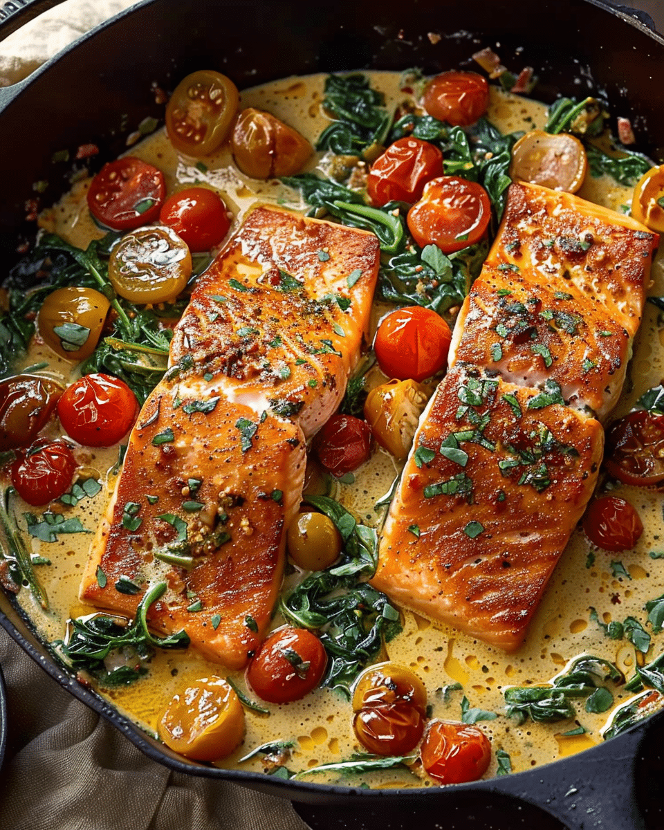 Creamy Tuscan Marry Me Salmon is a quick and elegant one-pan recipe featuring seared salmon fillets smothered in a rich sun-dried tomato cream sauce with garlic, spinach, and Parmesan. This 30-minute dish is perfect for weeknight dinners or special occasions and always delivers bold, restaurant-quality flavor.