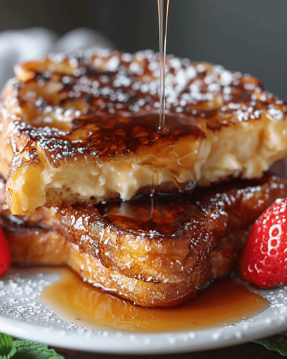 Crème Brûlée French Toast is the kind of breakfast that makes any morning feel like a celebration. With its buttery caramel base, rich custard-soaked bread, and golden finish, this dish is a showstopper that’s as easy to make as it is satisfying to eat. Whether I’m serving guests or just enjoying a slow weekend morning, this French toast never fails to impress — and disappear fast.