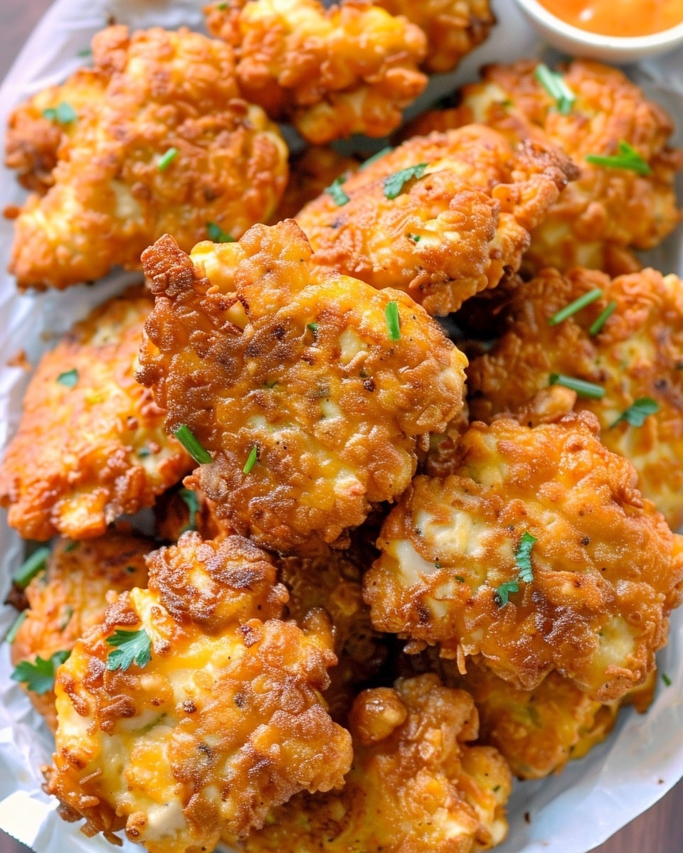 Crispy cheesy chicken fritters are savory, golden-brown bites of juicy chicken, melted cheese, and flavorful herbs—pan-fried to perfection. Quick, protein-packed, and family-friendly, these crispy cheesy chicken fritters are perfect as an appetizer, snack, or easy main dish.