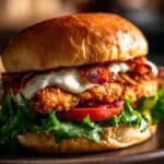 The Crispy Chicken Caesar Sandwich is a flavorful mashup of Caesar salad and a hearty chicken sandwich. Featuring golden-breaded chicken, crisp romaine, creamy Caesar dressing, and Parmesan on a toasted bun, it’s a crunchy, savory handheld meal that’s easy to love.