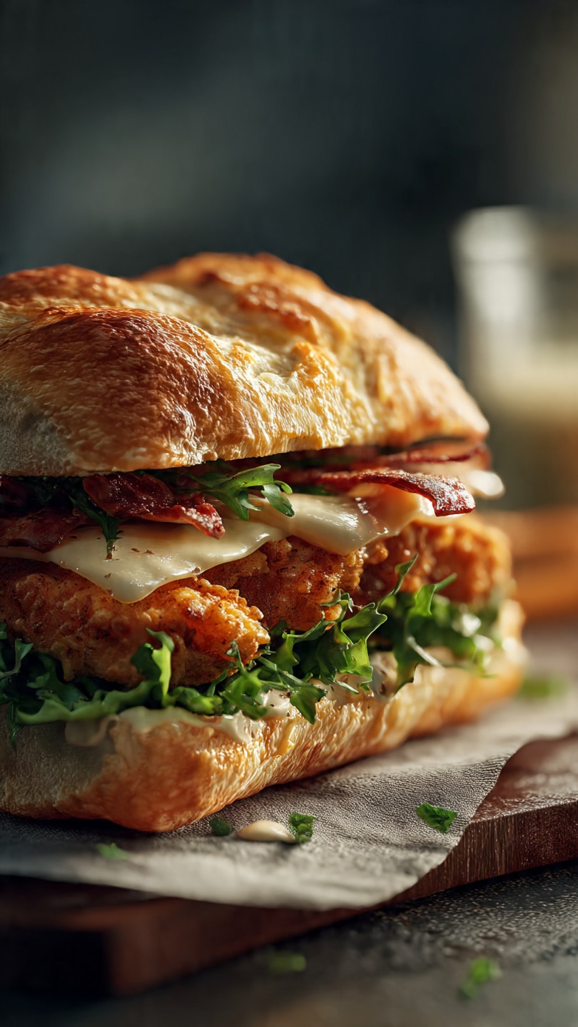 The Crispy Chicken Caesar Sandwich is a mouthwatering twist on the classic Caesar salad, stacked high between two slices of bread or a toasted bun. Juicy, golden-breaded chicken, crisp lettuce, creamy Caesar dressing, and a sprinkle of Parmesan come together to create a sandwich that’s crunchy, savory, and seriously satisfying. It’s one of those meals I keep coming back to when I want comfort food with a fresh, tangy bite.