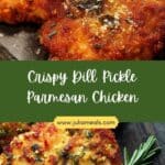 Crispy Dill Pickle Parmesan Chicken is a bold, tangy twist on classic breaded chicken. Marinated in dill pickle juice and coated with a cheesy Parmesan crust, this chicken turns out juicy on the inside and irresistibly crispy on the outside. It’s packed with flavor and makes an easy, crave-worthy main dish I can serve with just about anything.