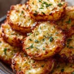 Crispy Garlic Parmesan Crusted Potatoes are golden on the outside, tender on the inside, and packed with savory, cheesy flavor. They’re roasted to perfection with a crisp, caramelized parmesan and garlic crust that makes every bite irresistible. I love serving these as a side dish, snack, or even a fun appetizer—they disappear fast every time.